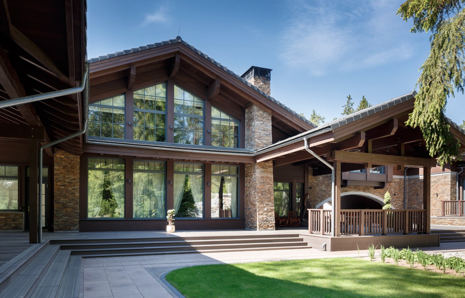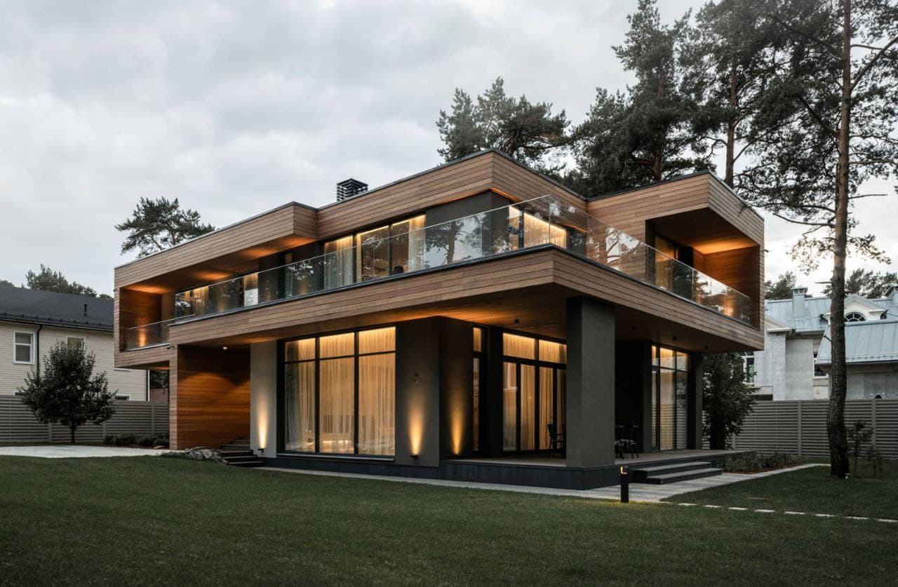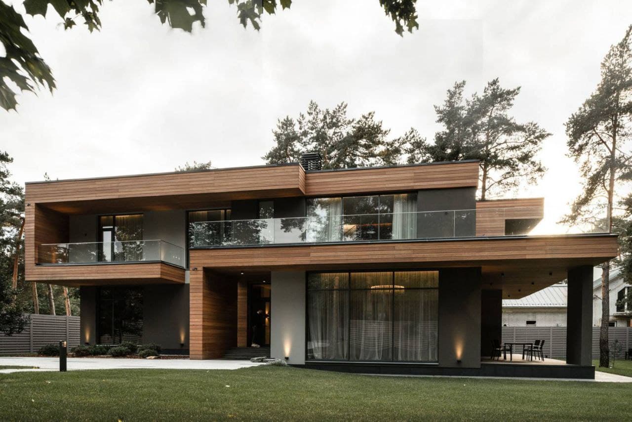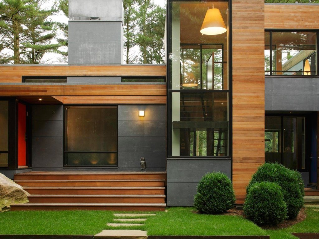 - Термообработанное дерево, планкен из лиственницы, керамогранит, натуральный камень и иные материалы